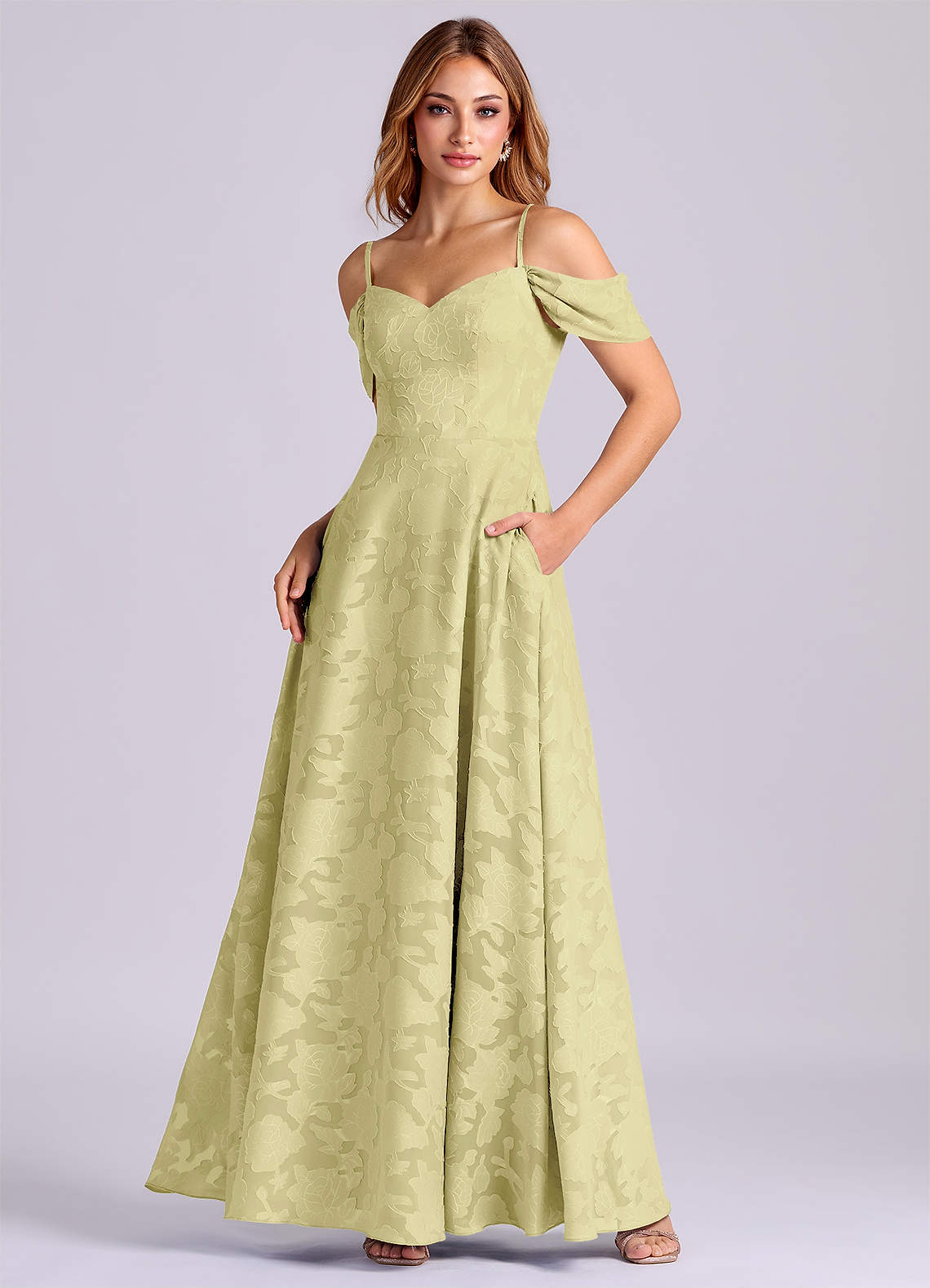 Klä av A-Linje i Blommig Utbrändhet Av axeln Citronsorbet Konvertibel