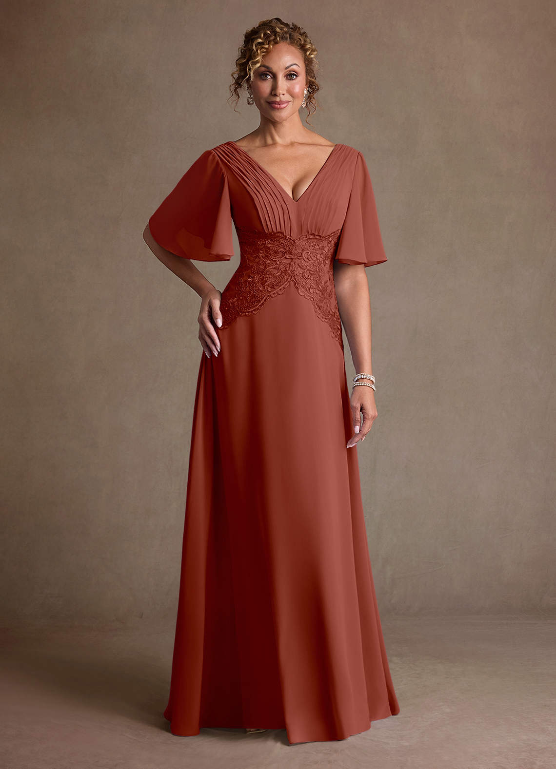 Klä A-Line i Chiffong Spets Kastanjebrunt