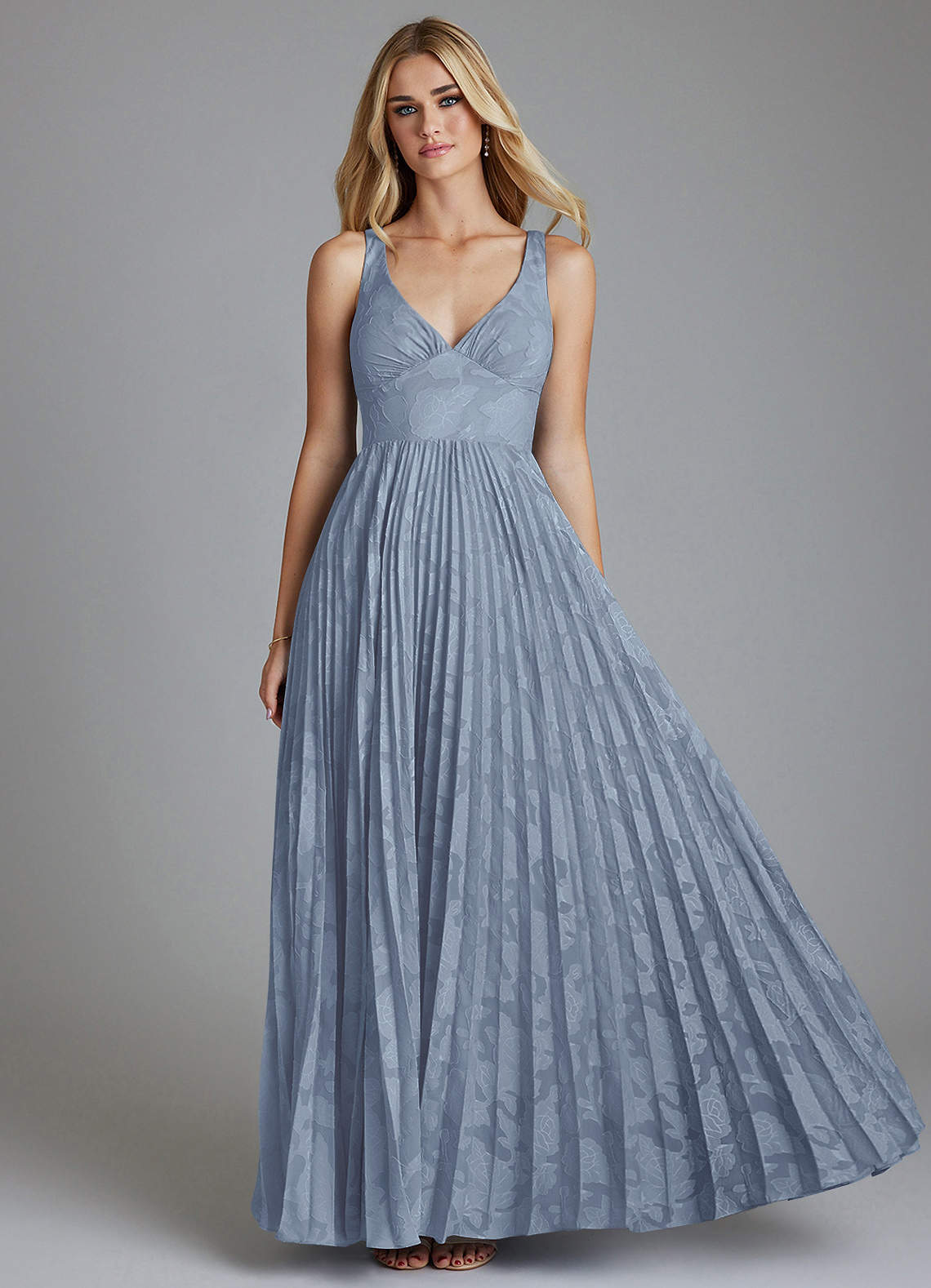 Klä av A-Linje i Blommig Utbrändhet Plisserad Dammblå