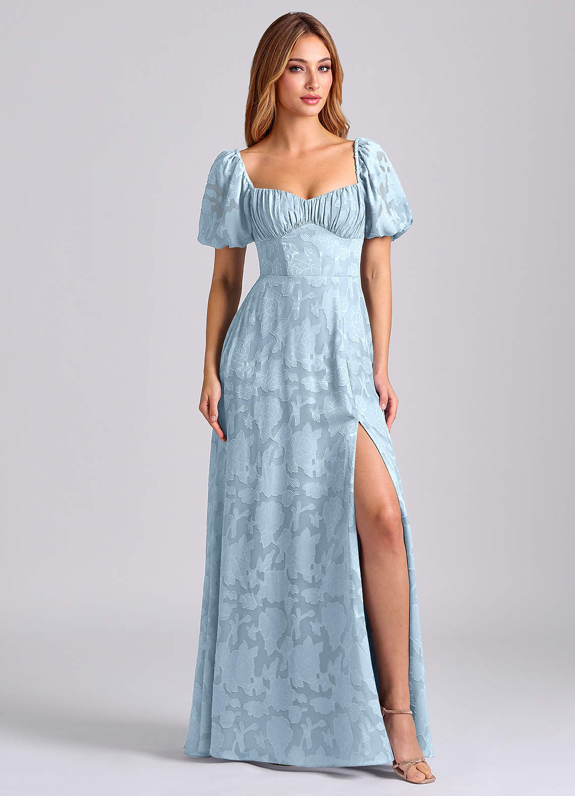 Klä av A-Linje i Blommig Utbrändhet Älskling Halsringning Himmelsblå