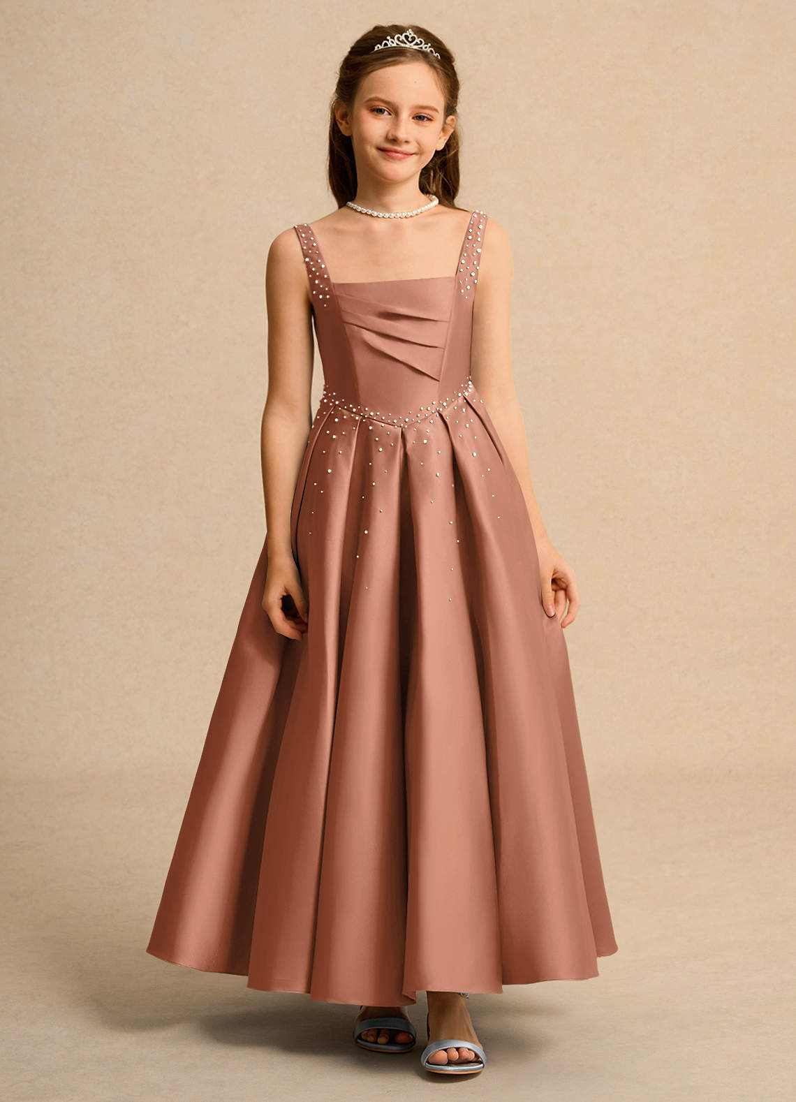 Klä Balklänning i Matt satäng Plisserad