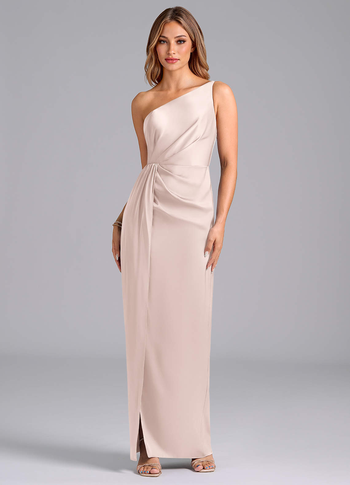 Klä av Tubklänning i Stretch Satin Ena axeln Rodnande Rosa