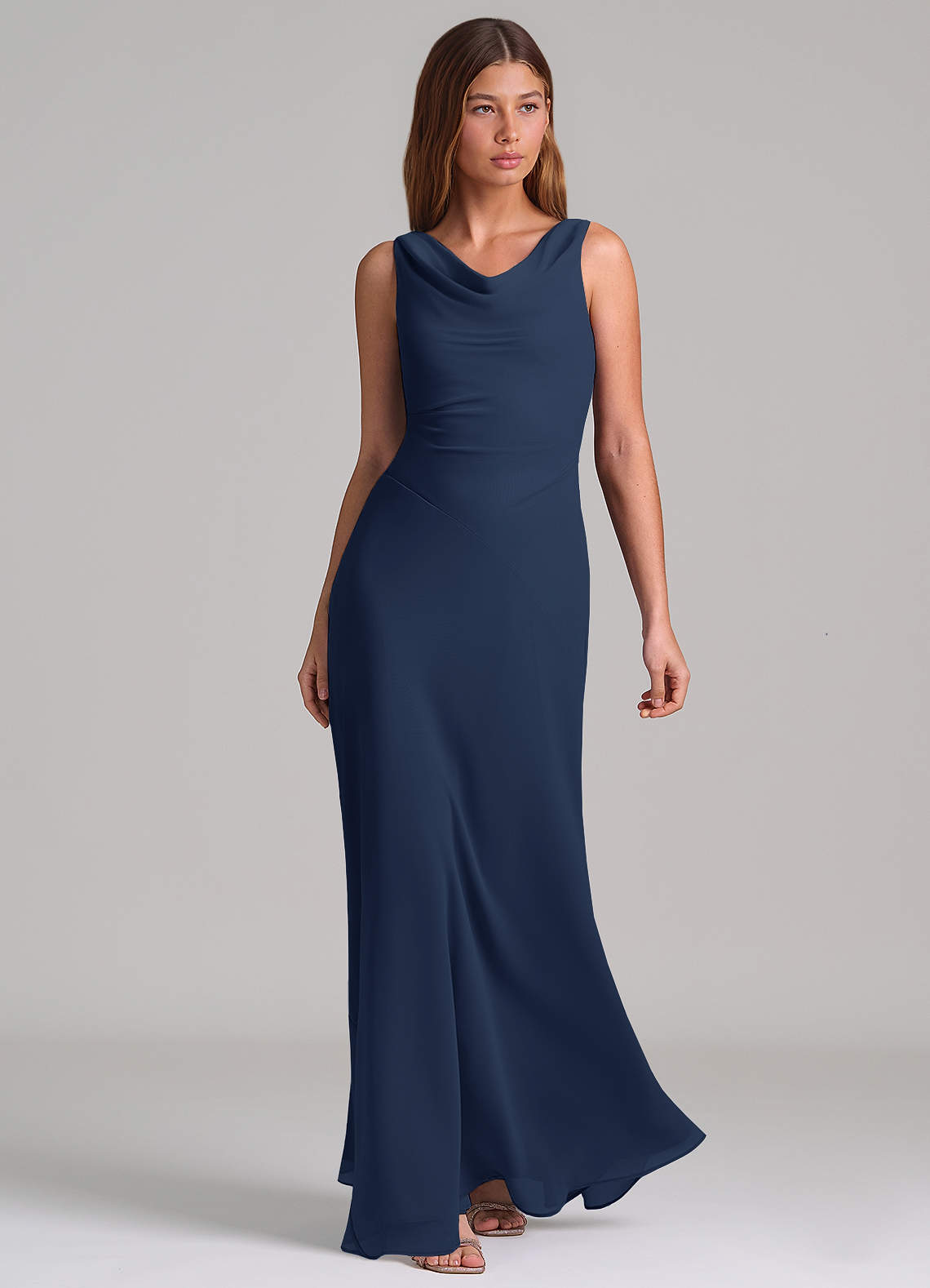 Klä av A-Linje i Chiffong Plisserad Mörk Marinblå