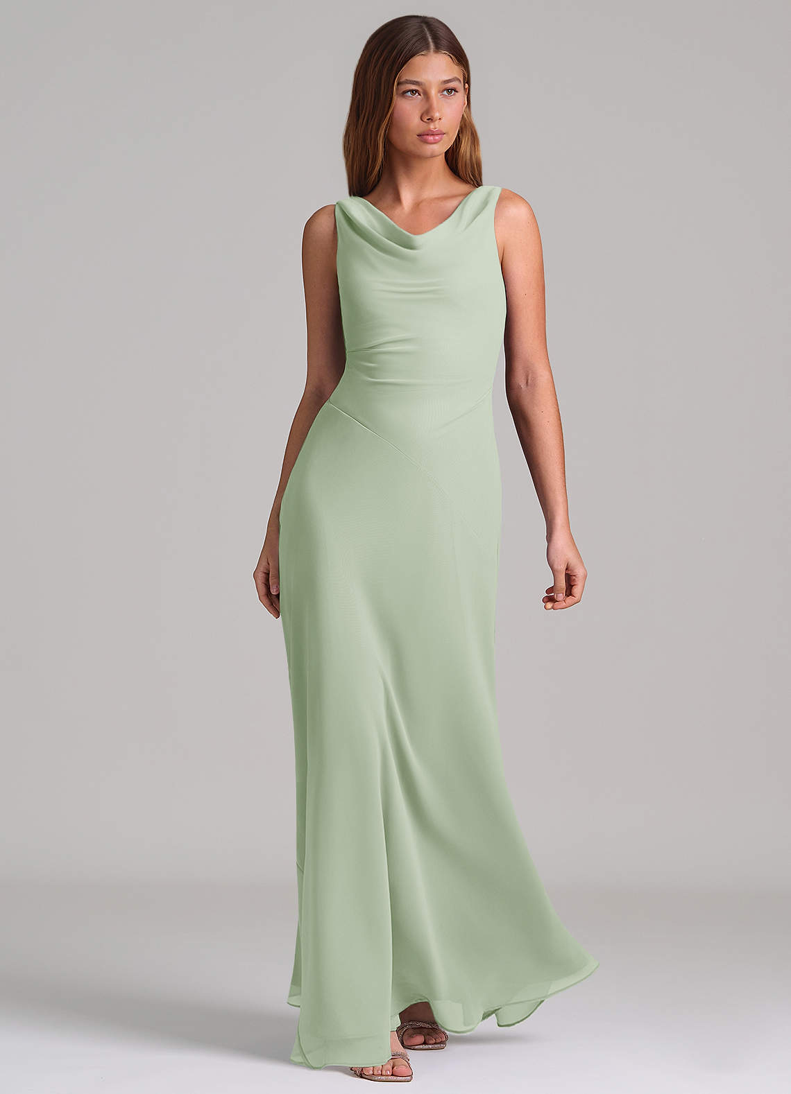 Klä av A-Linje i Chiffong Plisserad Dusty Sage