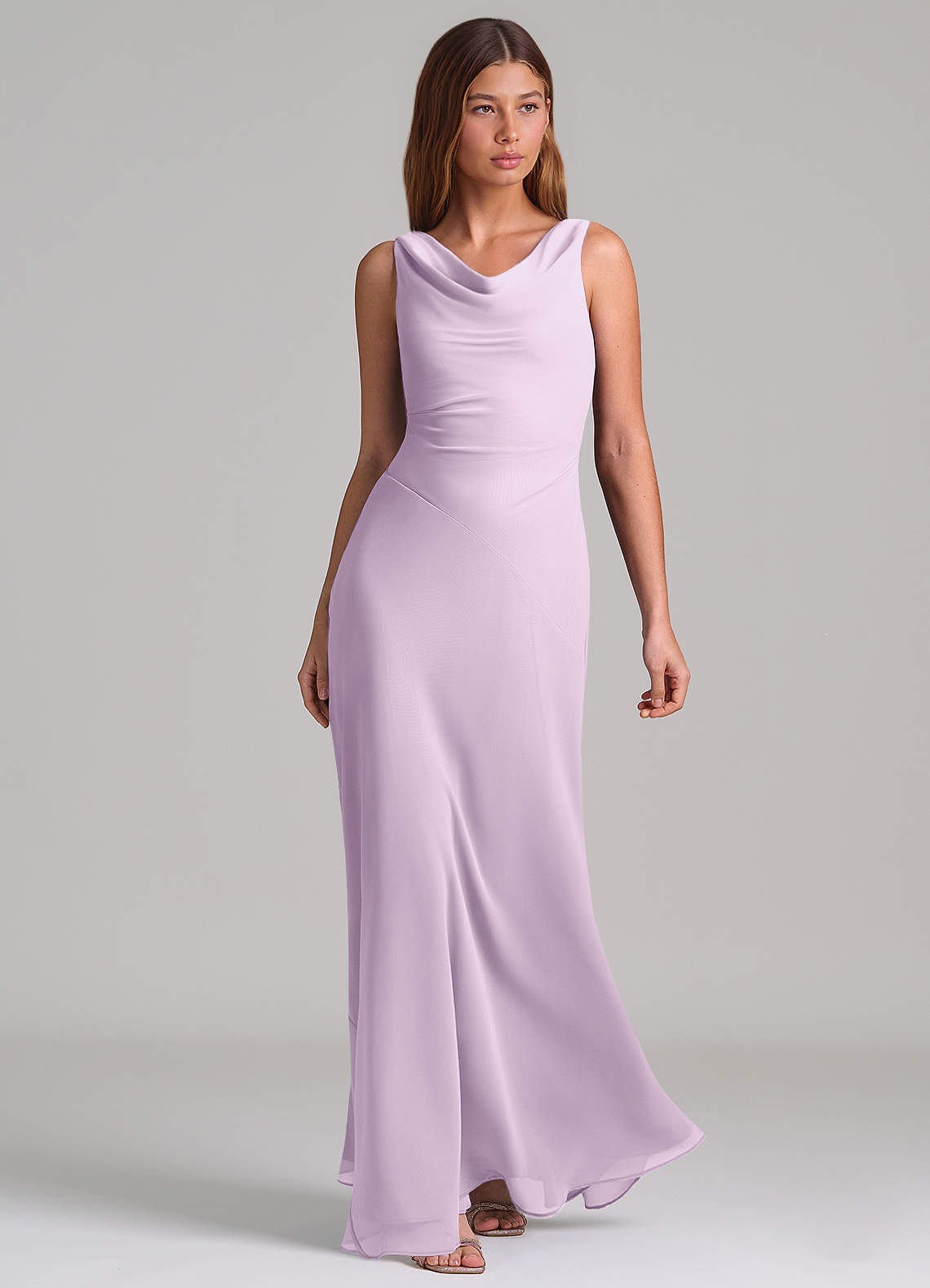 Azazie Nerine Brudtärnklänningar Klä av A-Linje i Chiffong Plisserad Frostad Lila image1