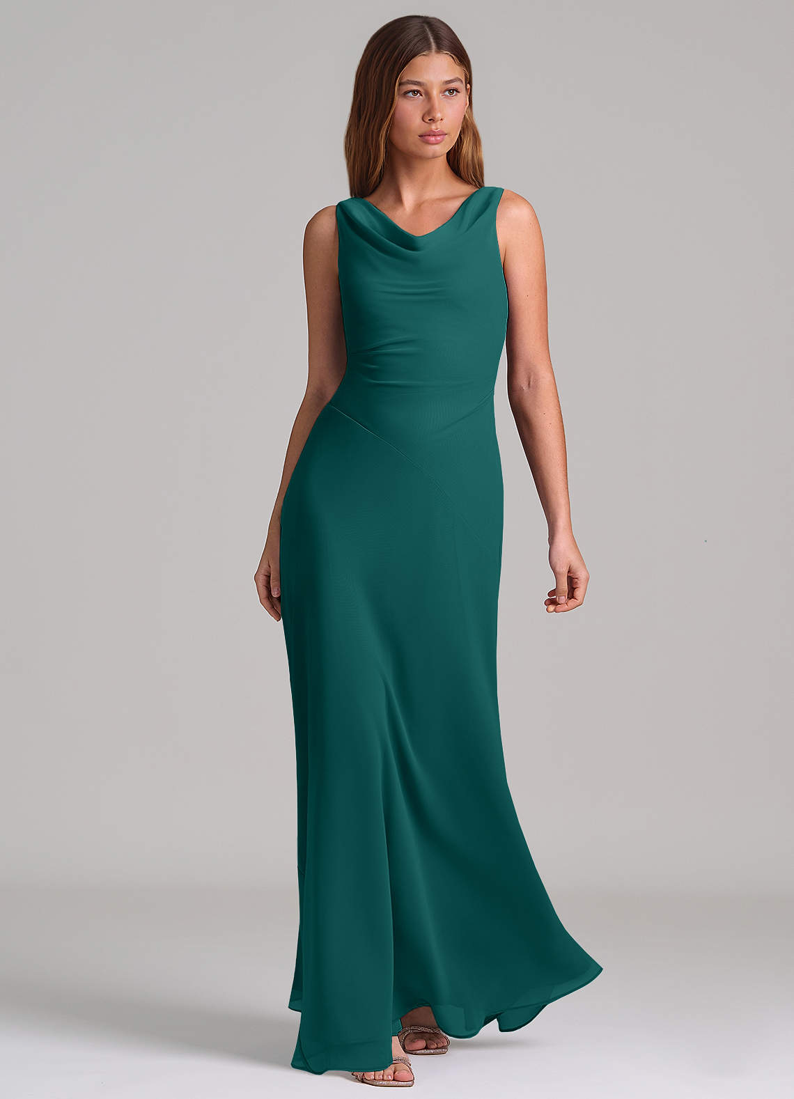 Klä av A-Linje i Chiffong Plisserad Påfågelblå