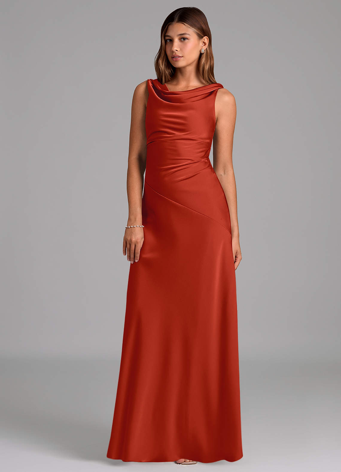 Klä av A-Linje i Stretch Satin Plisserad Rost