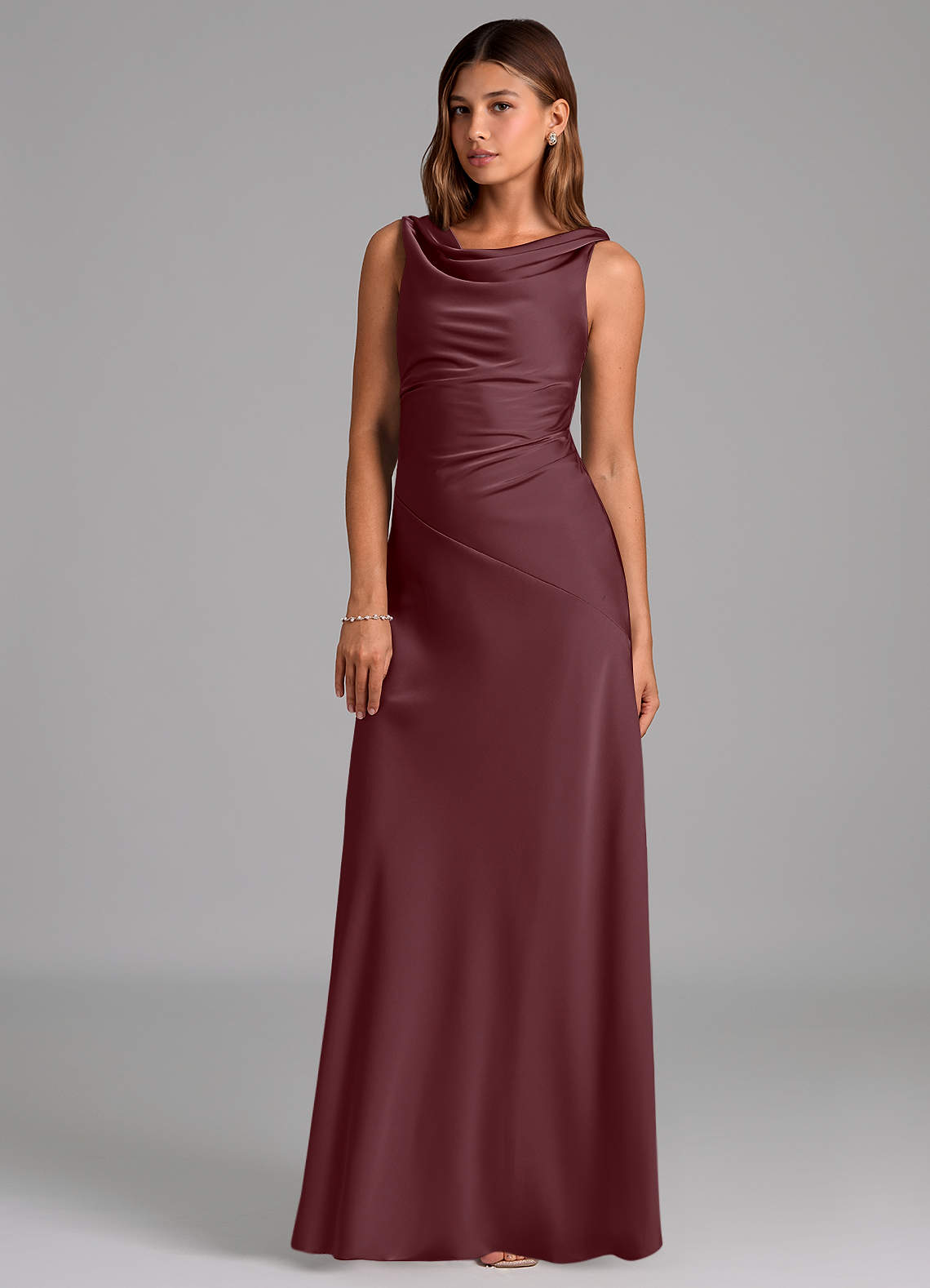 Klä av A-Linje i Stretch Satin Plisserad Sangria
