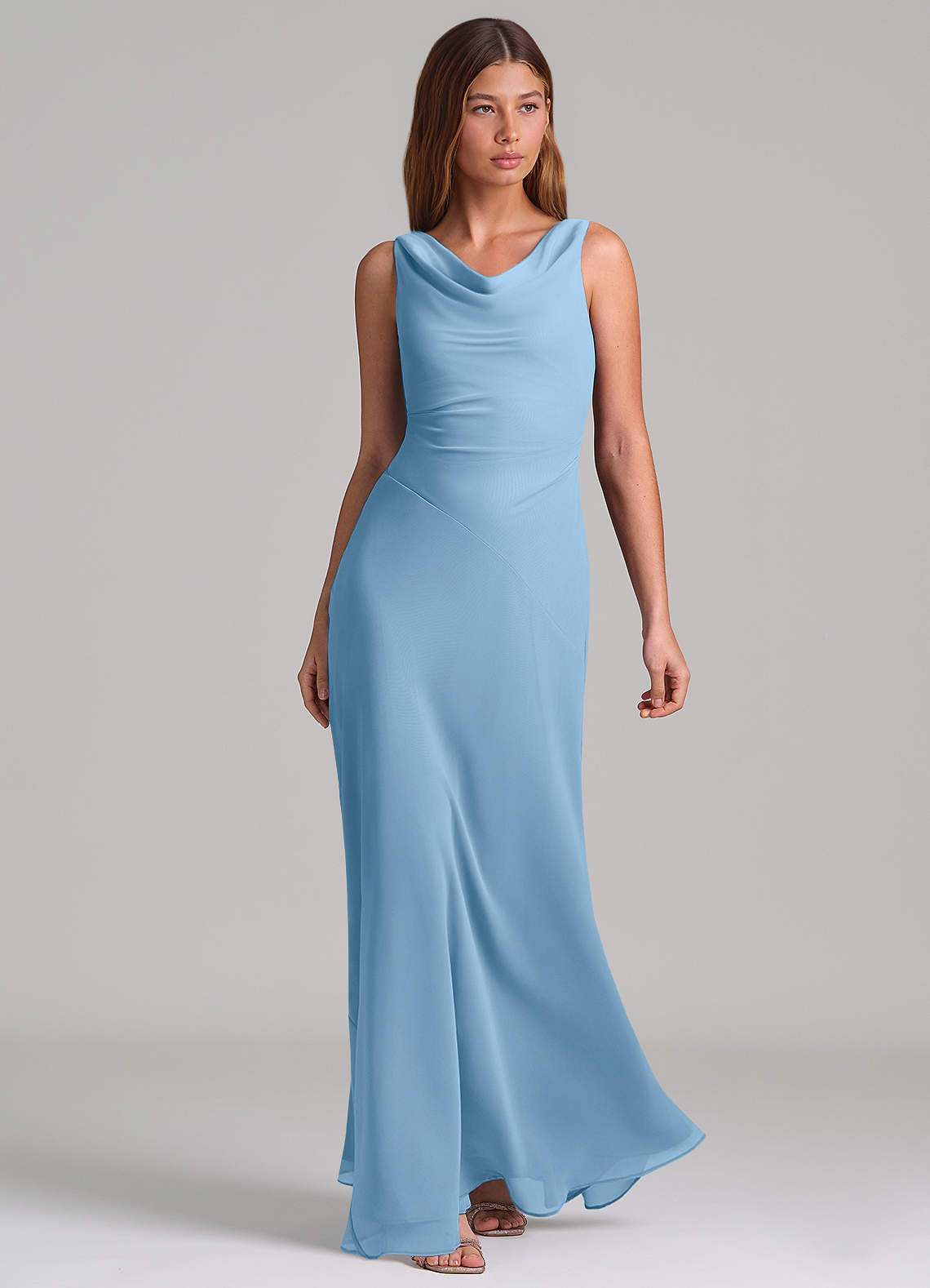 Klä av A-Linje i Chiffong Plisserad Stålblå