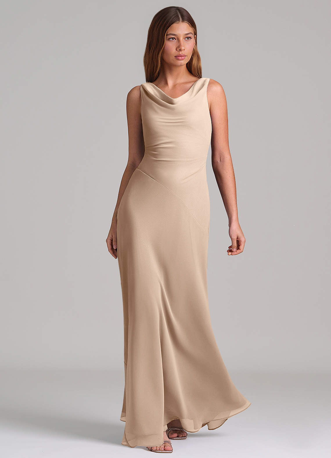 Klä av A-Linje i Chiffong Plisserad Taupe