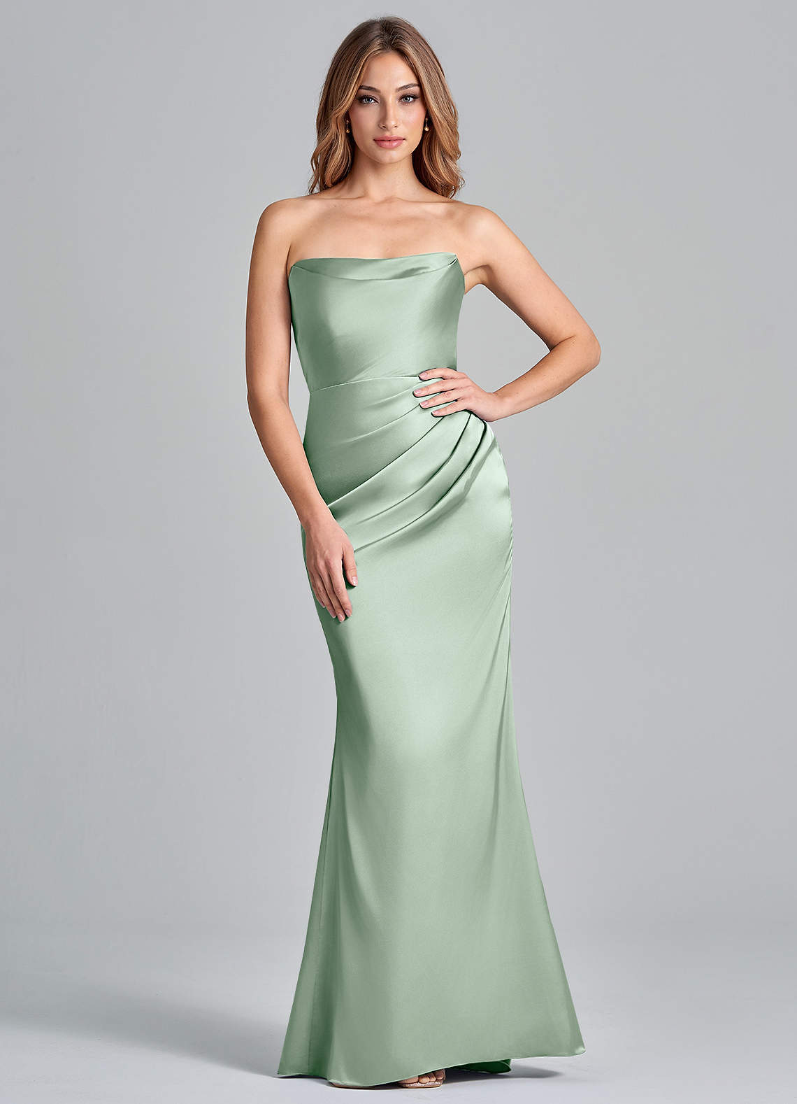 Klä av Sjöjungfru i Stretch Satin Axelbandslös Agave Konvertibel
