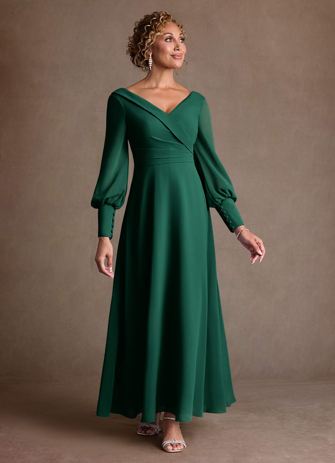 Klä A-Line i Chiffong Plisserad Smaragdgrön