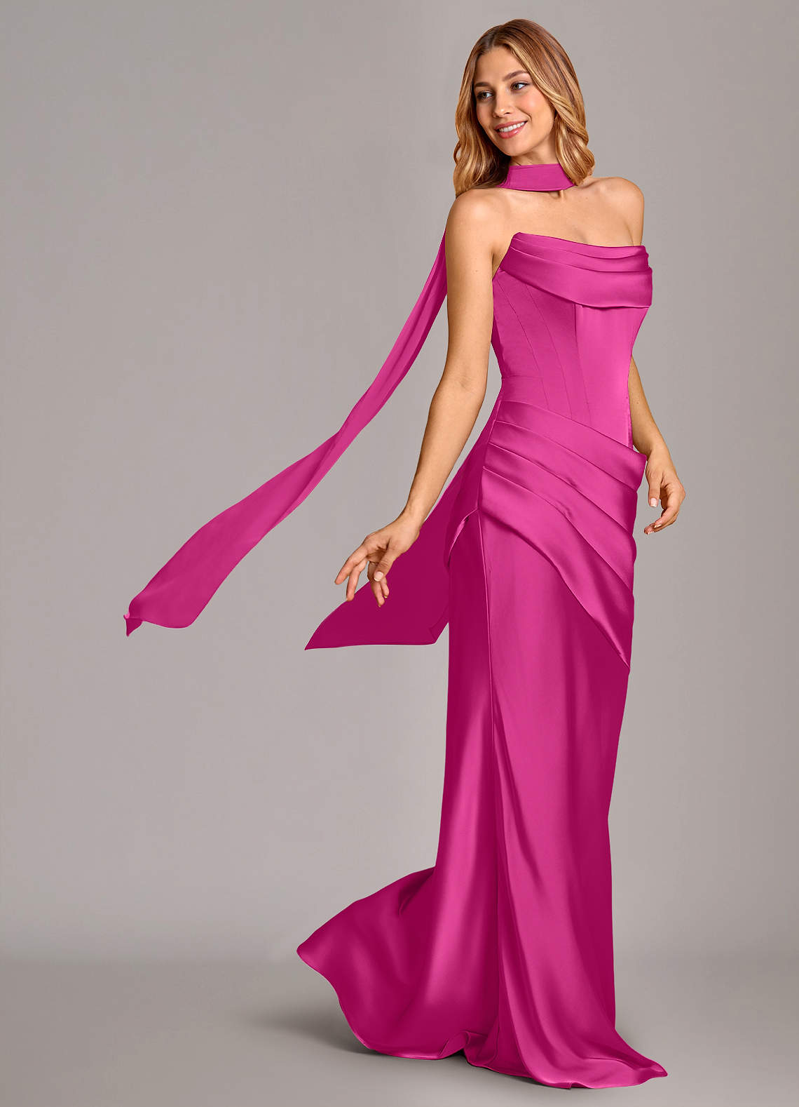 Klä av Sjöjungfru i Stretch Satin Korsett Fuchsia Konvertibel