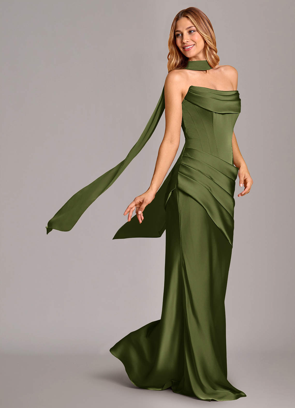Klä av Sjöjungfru i Stretch Satin Korsett Oliv Konvertibel