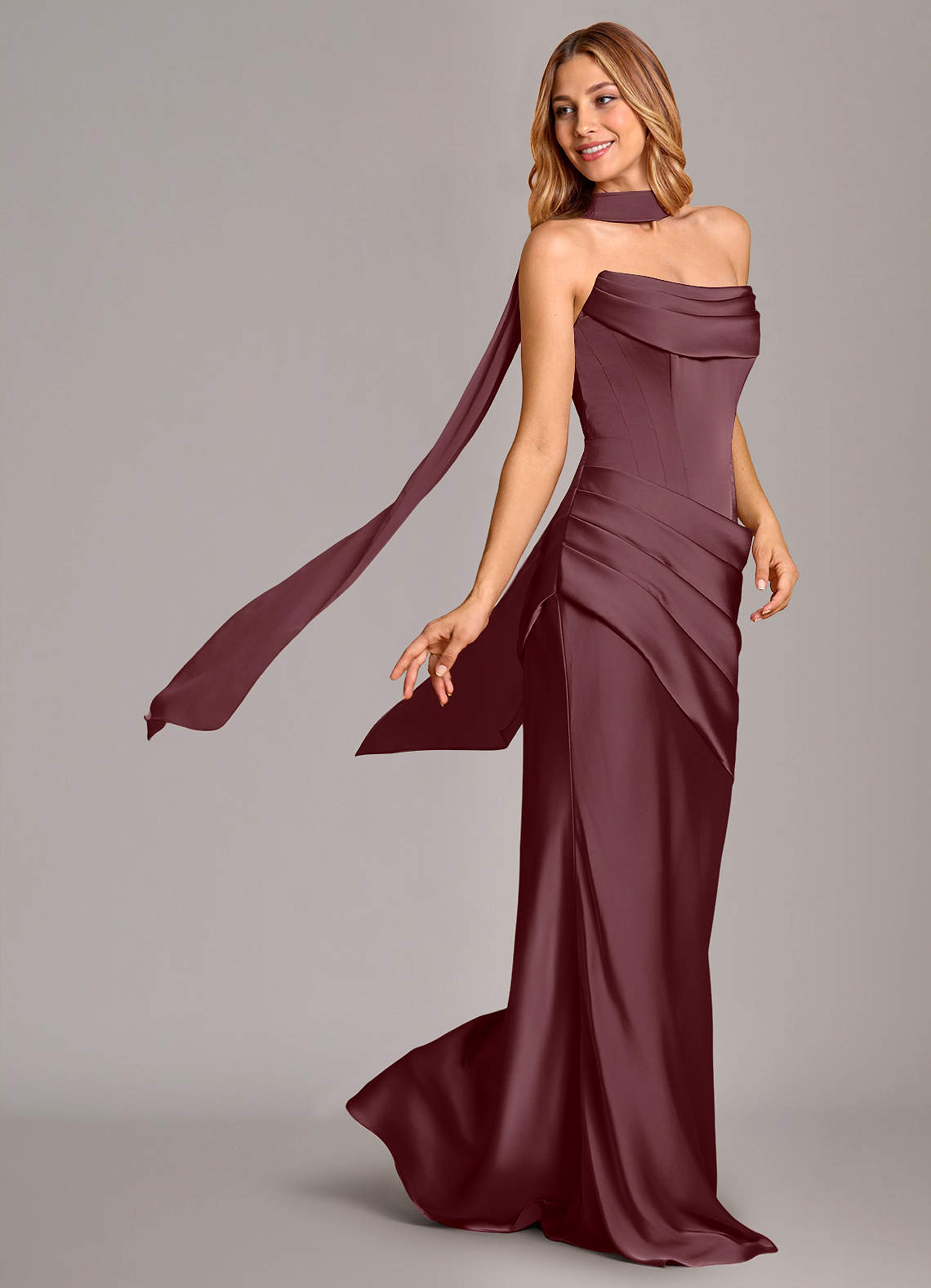 Klä av Sjöjungfru i Stretch Satin Korsett Sangria Konvertibel