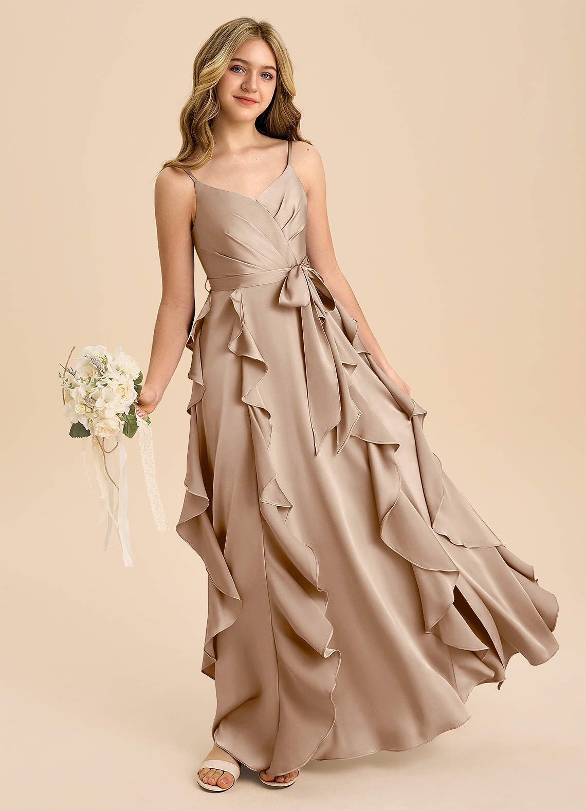 Klä av A-Line i Stretch Satin Plisserad