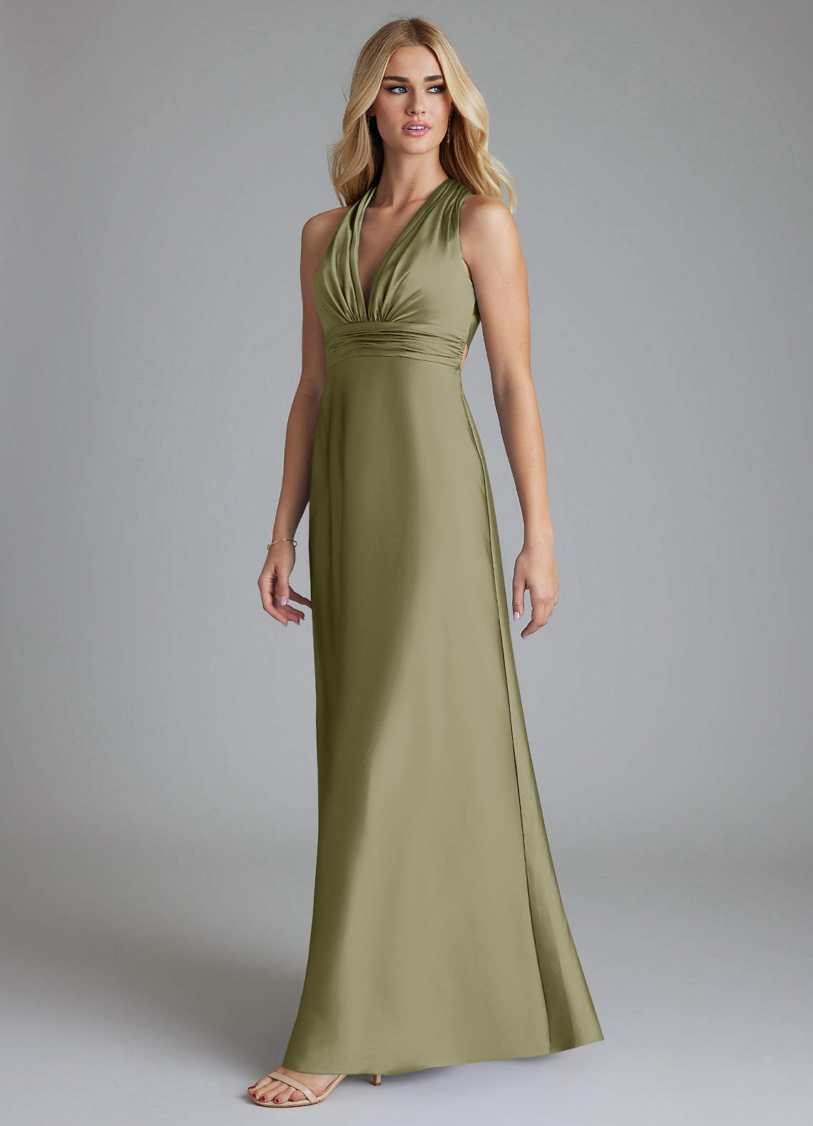 Klä av A-Linje i Stretch Satin Plisserad Pistasch