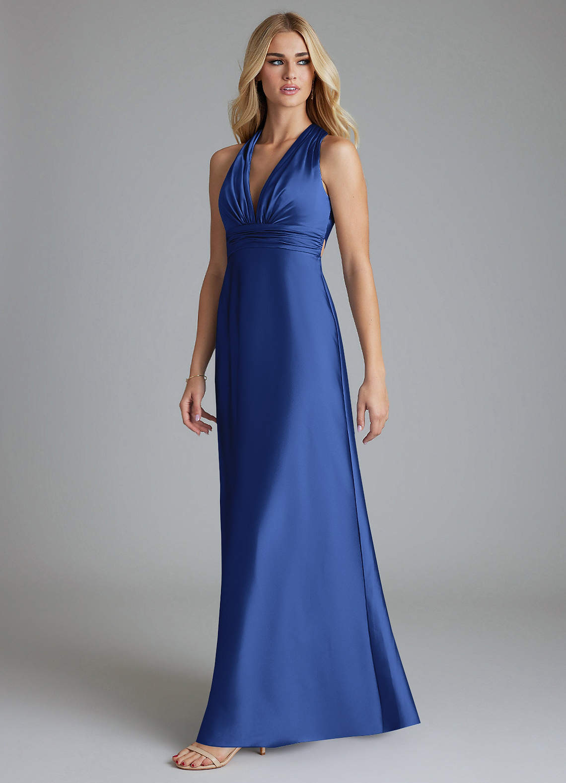 Klä av A-Linje i Stretch Satin Plisserad Kungsblå