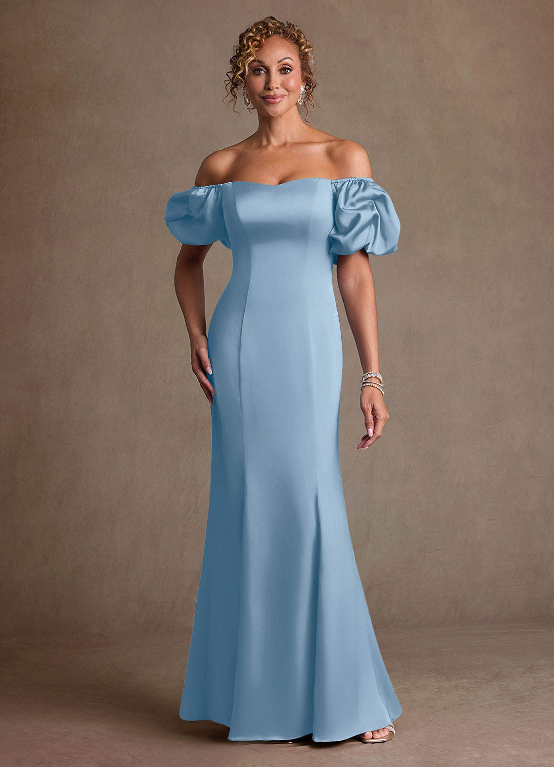 Klä Tubklänning i Stretch Satin Rynkad Puderblå