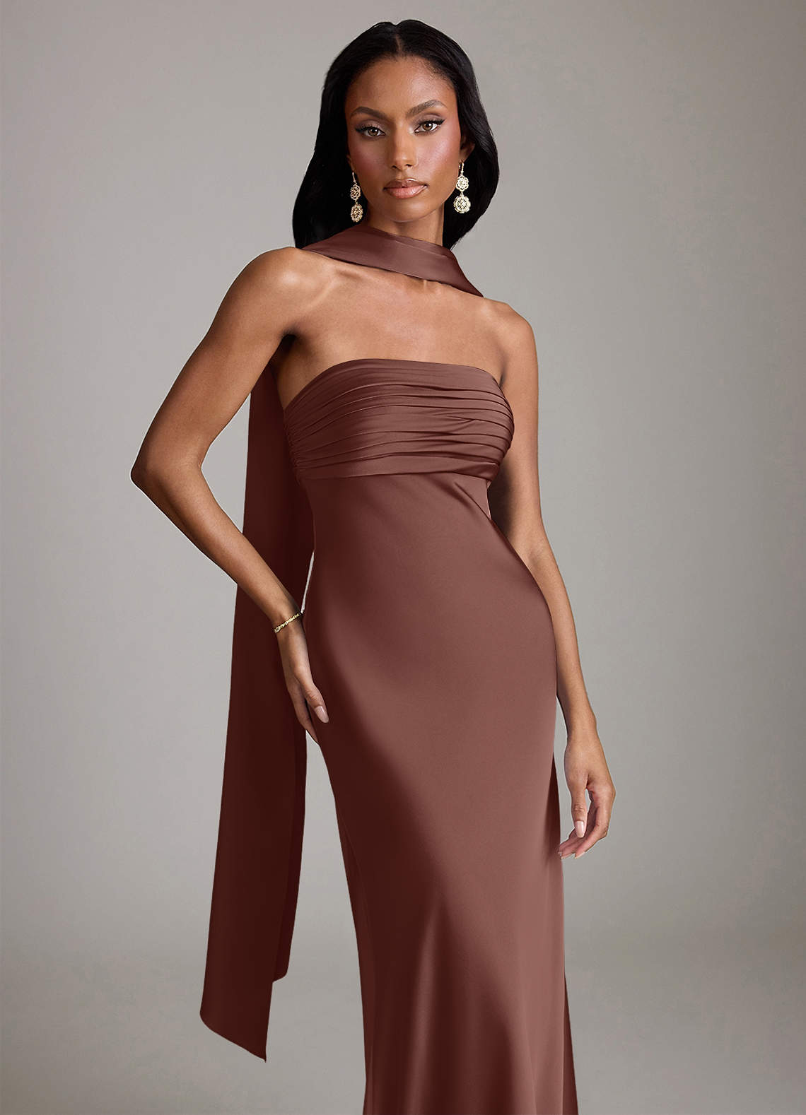 Klä av Sjöjungfru i Stretch Satin Axelbandslös Espresso