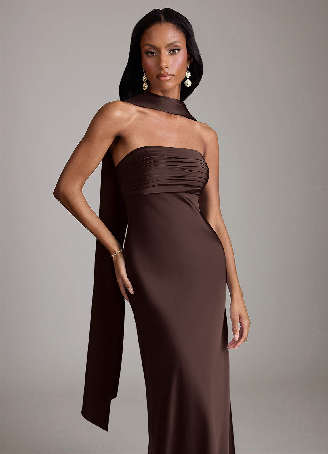 Klä av Sjöjungfru i Stretch Satin Axelbandslös Ganache