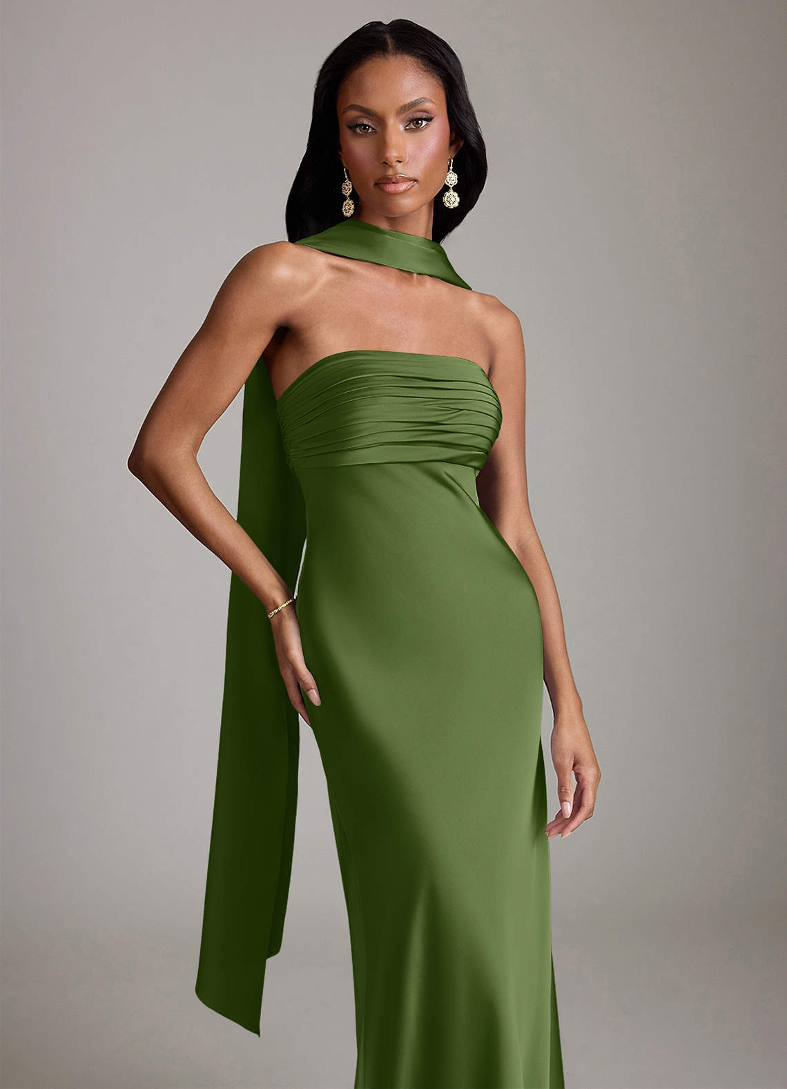 Klä av Sjöjungfru i Stretch Satin Axelbandslös Enbärsgrön