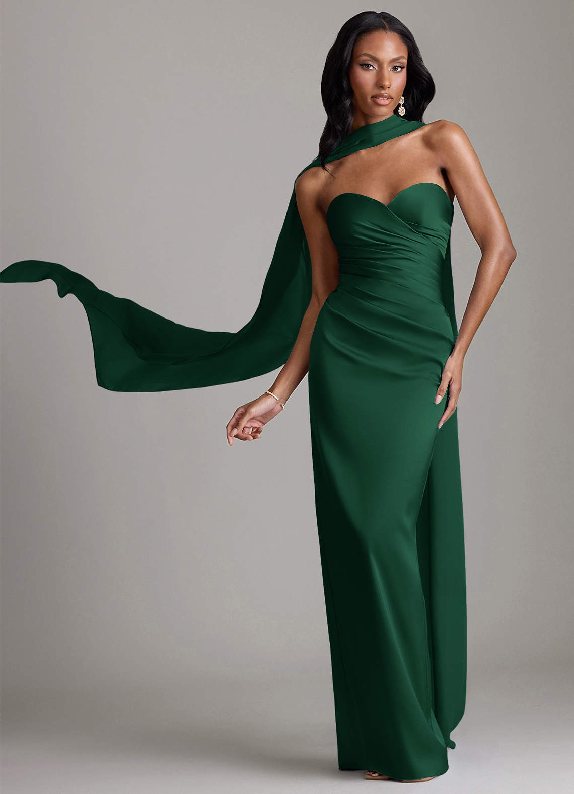 Klä av Tubklänning i Stretch Satin Axelbandslös Mörkgrön