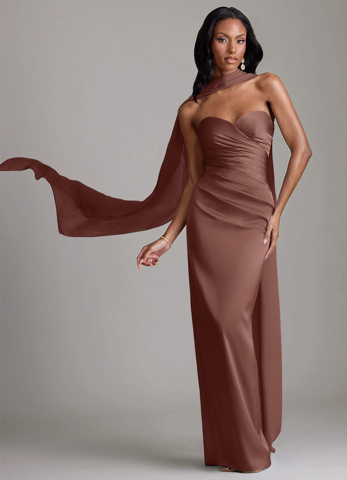 Klä av Tubklänning i Stretch Satin Axelbandslös Espresso