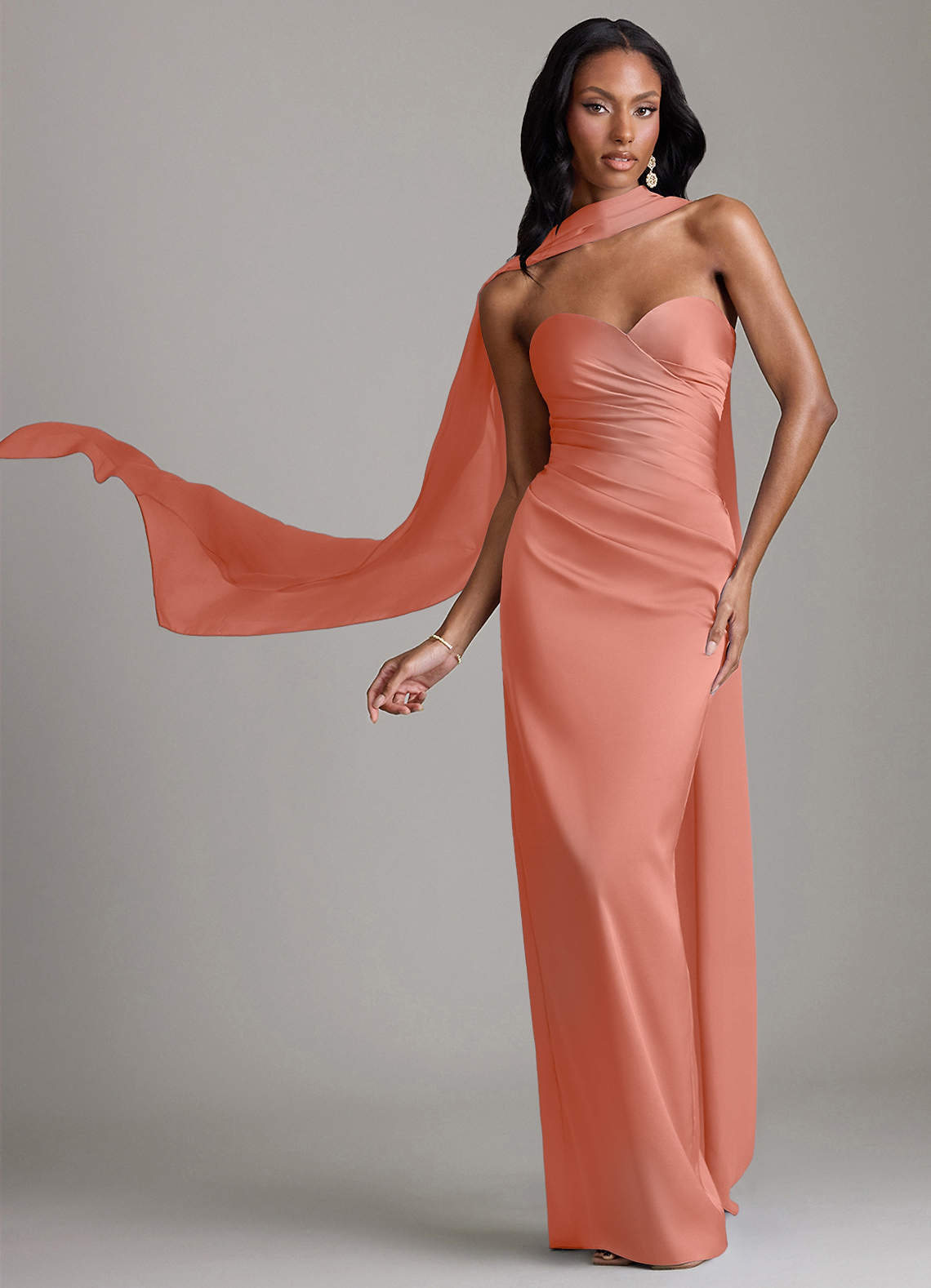 Klä av Tubklänning i Stretch Satin Axelbandslös Laxrosa