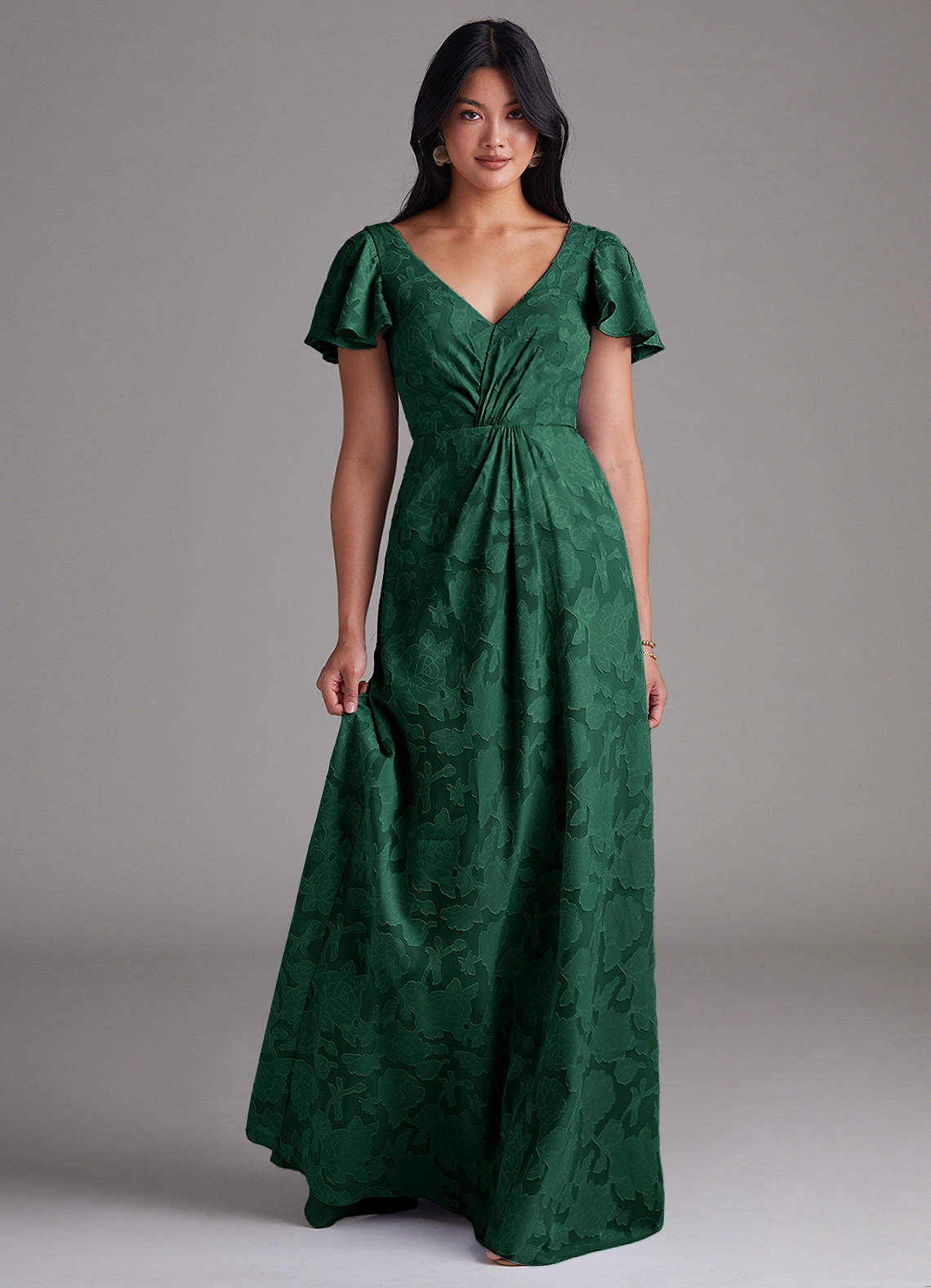 Klä av A-Linje i Blommig Utbrändhet Plisserad Mörkgrön