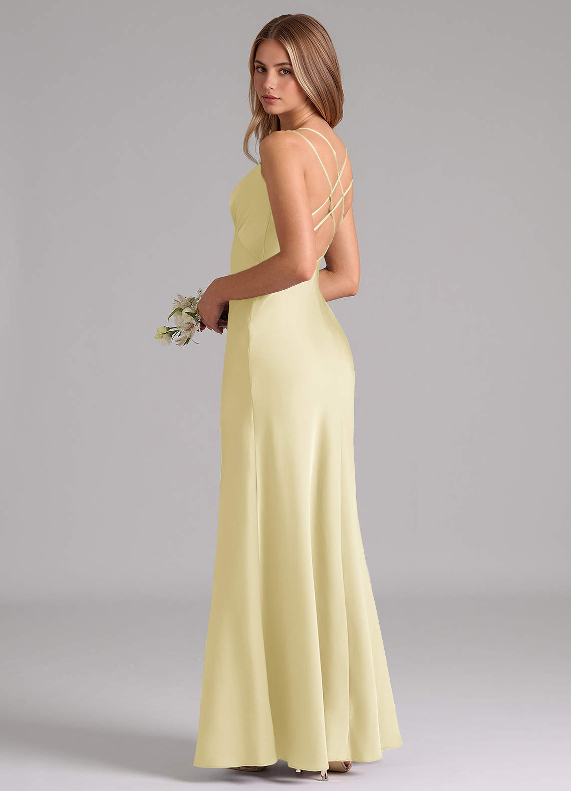 Klä av A-Linje i Stretch Satin Plisserad Citronsorbet