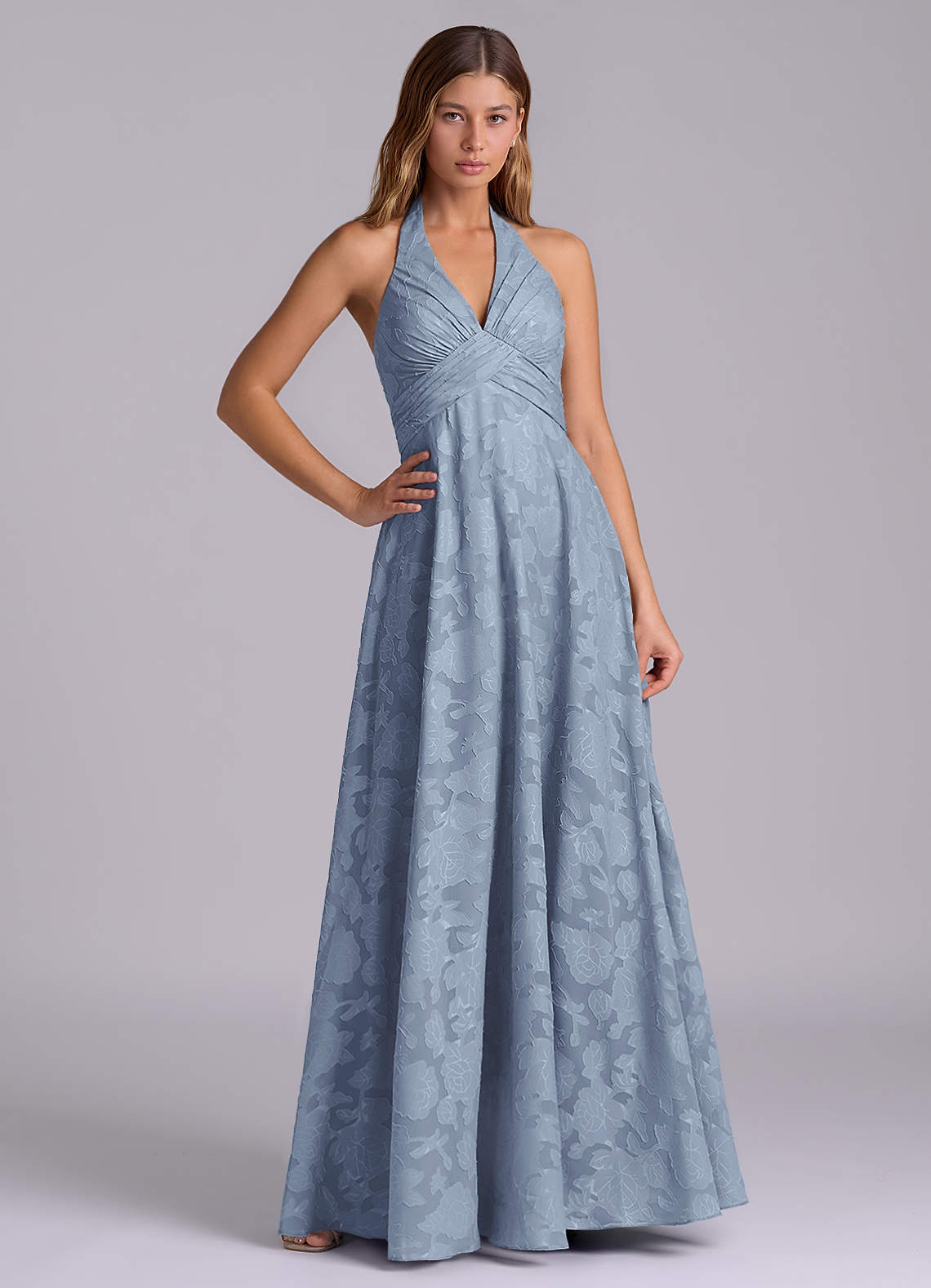 Klä av A-Linje i Blommig Utbrändhet Plisserad Dammblå