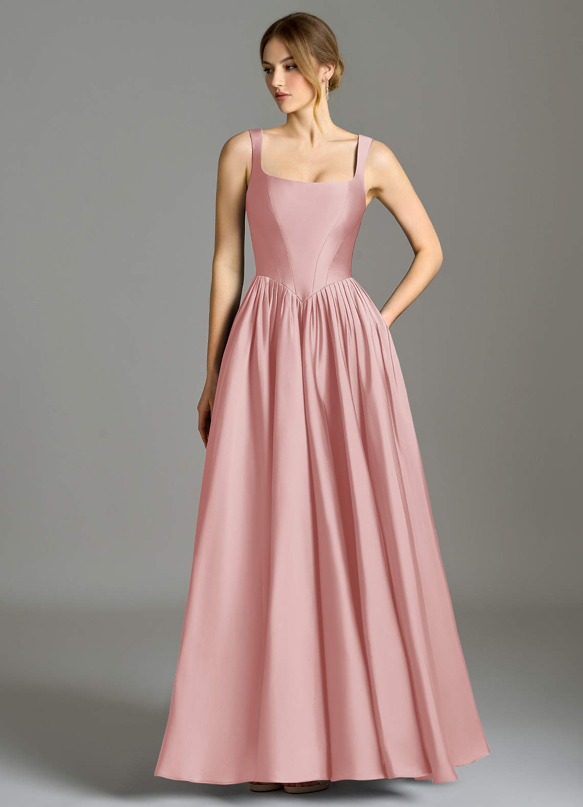 Klä av A-Linje i Stretch Satin Plisserad Puderrosa