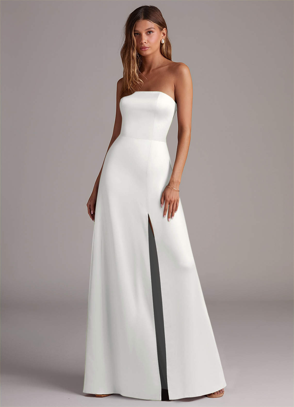 Klä av A-Linje i Stretch Satin Axelbandslös Vit Konvertibel