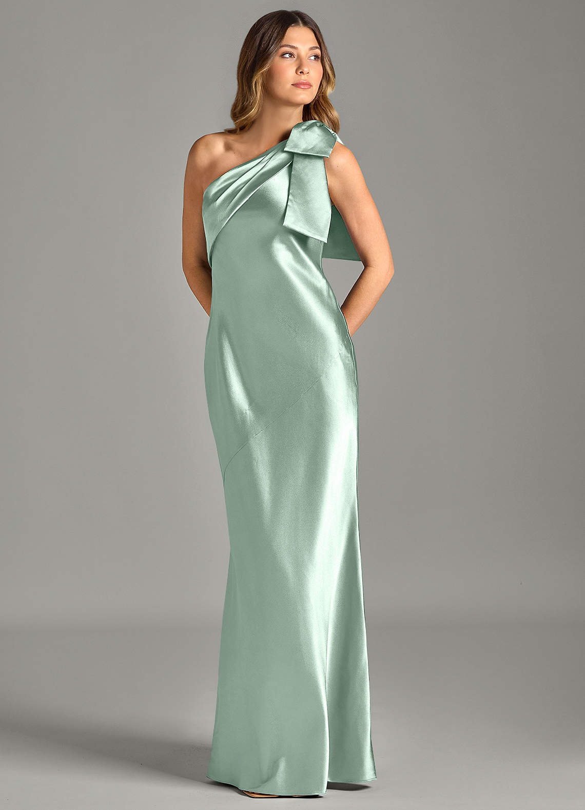 Klä av Sjöjungfru i Metallisk satin Ena axeln Agave