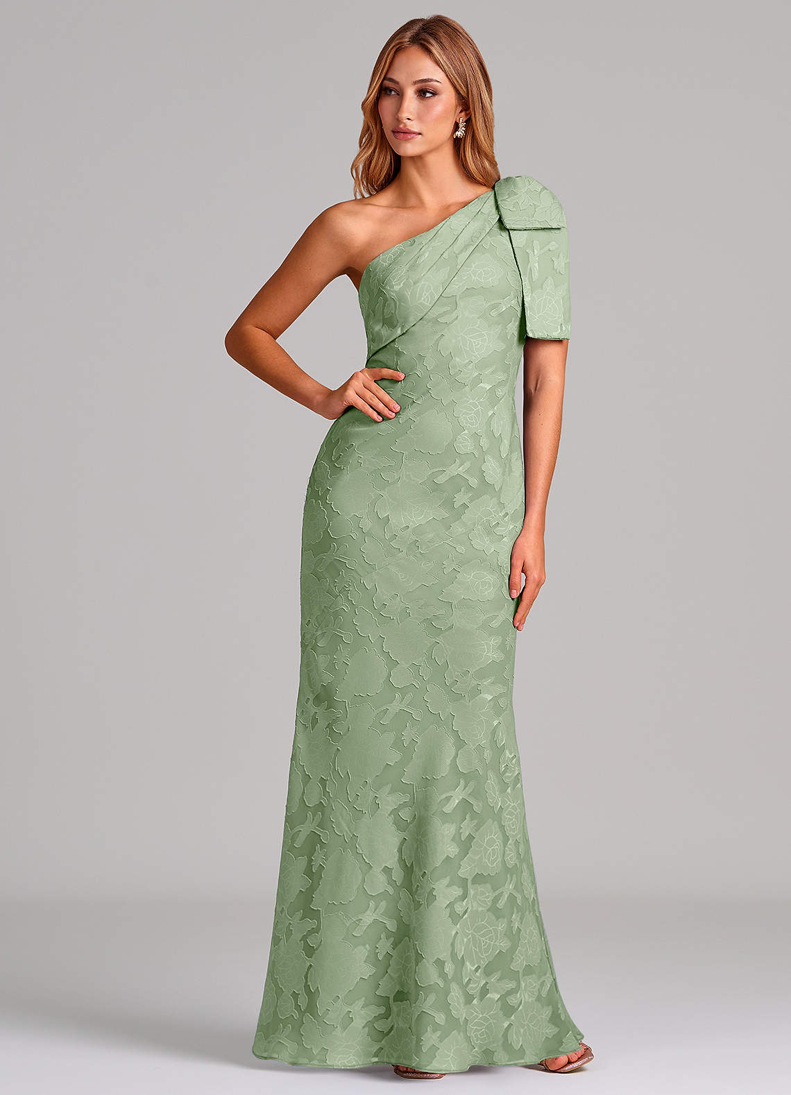 Klä av Sjöjungfru i Blommig Utbrändhet Ena axeln Dusty Sage