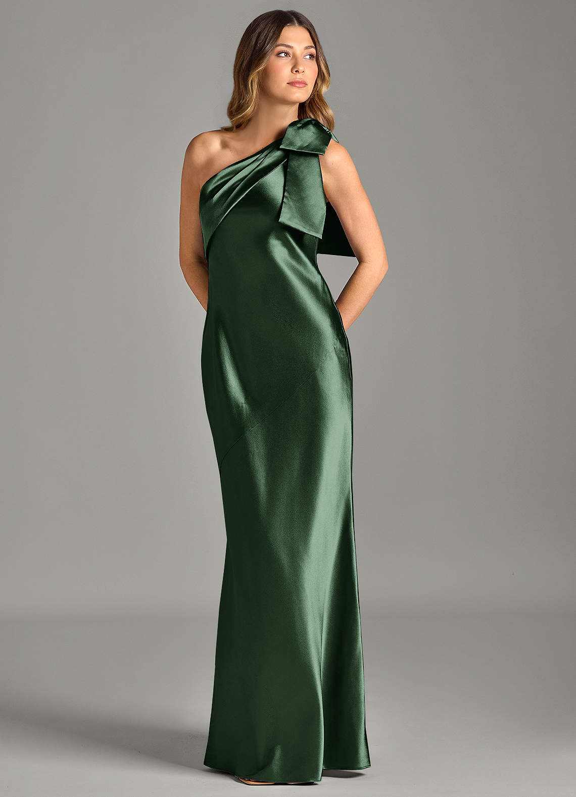 Klä av Sjöjungfru i Metallisk satin Ena axeln Eukalyptus