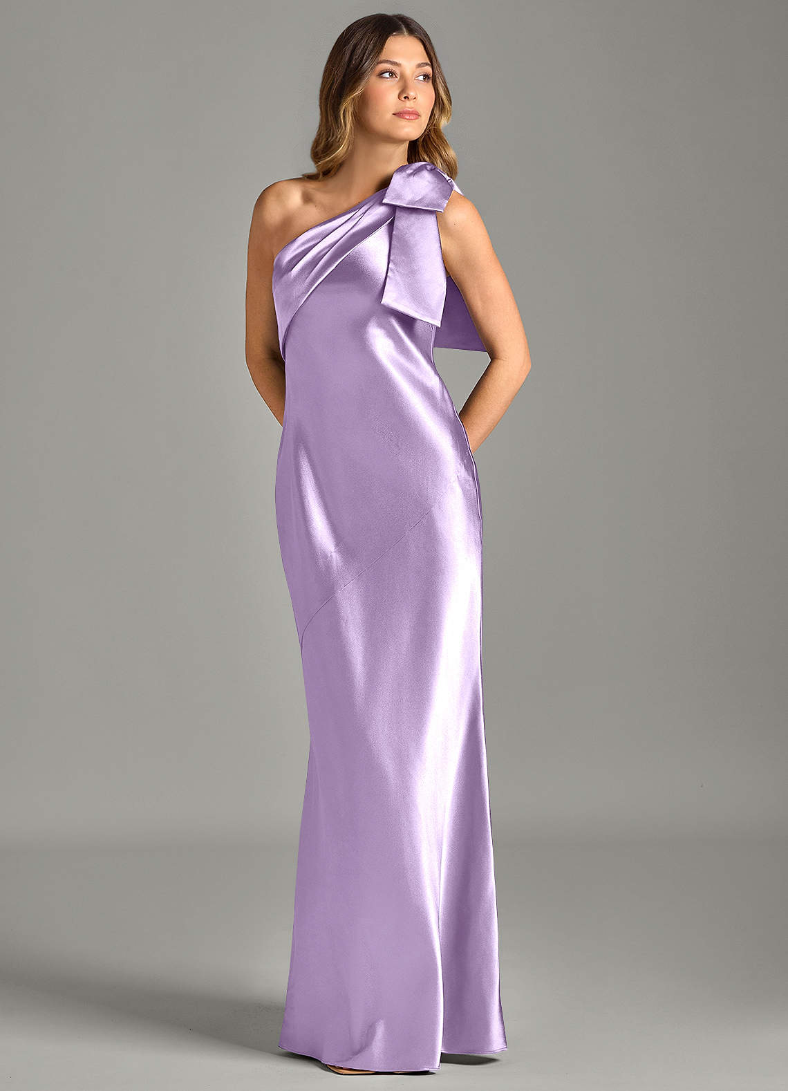 Klä av Sjöjungfru i Metallisk satin Ena axeln Lila