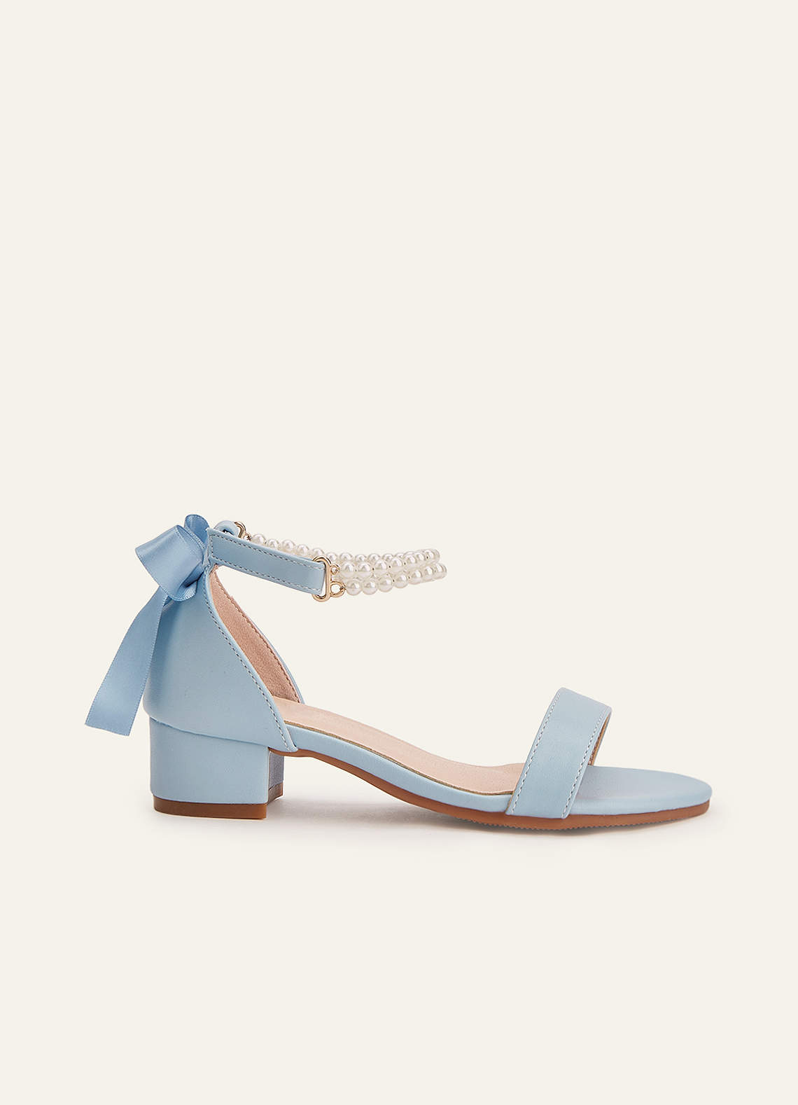 Pärla och rosett öppen tå blockklackar för småbarn, stora barn