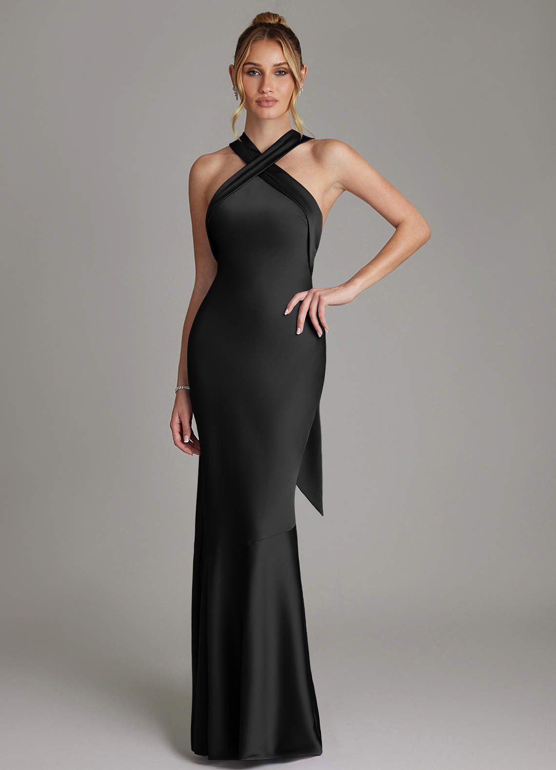 Klä av Sjöjungfru i Stretch Satin Plisserad Svart